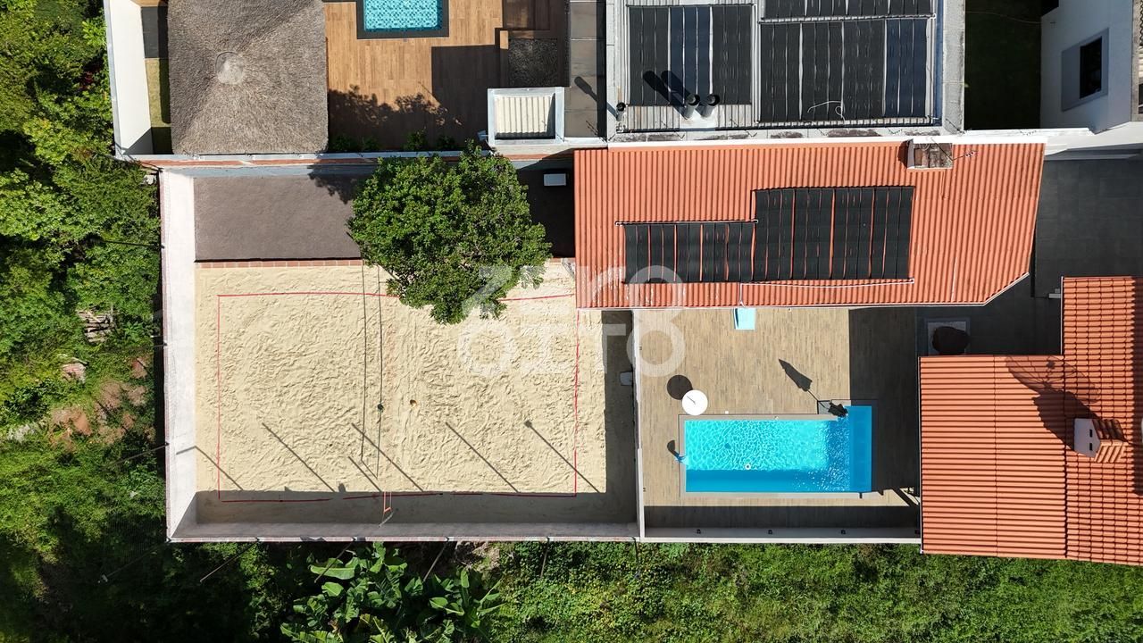 Piscina com aquecimento e hidro. Quadra de vôlei de areia toda cercada e com iluminação. Rebaixamento em Gesso.